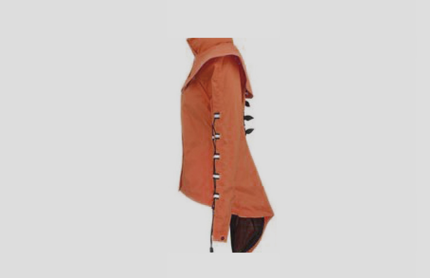 フィッシュテールデザインに背中と袖に伸縮バンジーのあるジャケットです。