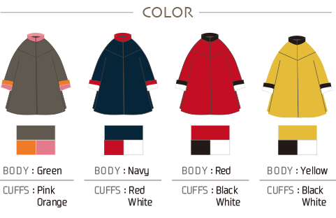 ウエストと袖口はギャザーで伸縮性を表現したツートンカラーのジャケット。